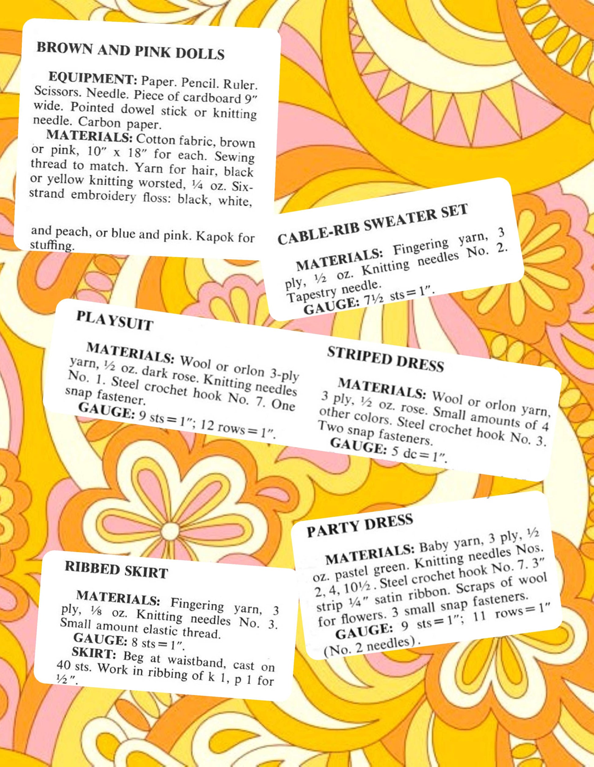 Offering a vintage PDF sewing pattern to make adorable "best friend" dolls with sewn bodies, yarn hair and knit & crocheted clothing!! TOO cute!!