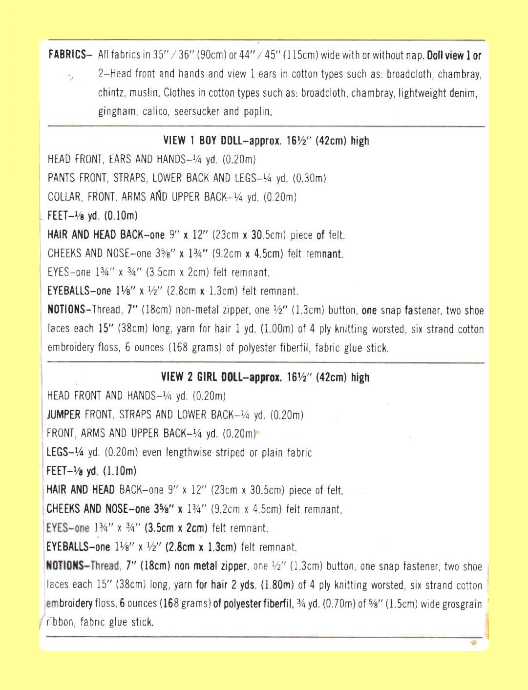 Retro 1983 pattern pdf repro includes easy written step by step directions, plenty of step-by-step illustrations, pattern piece layout chart and full size pattern doll template pieces. No need to enlarge!