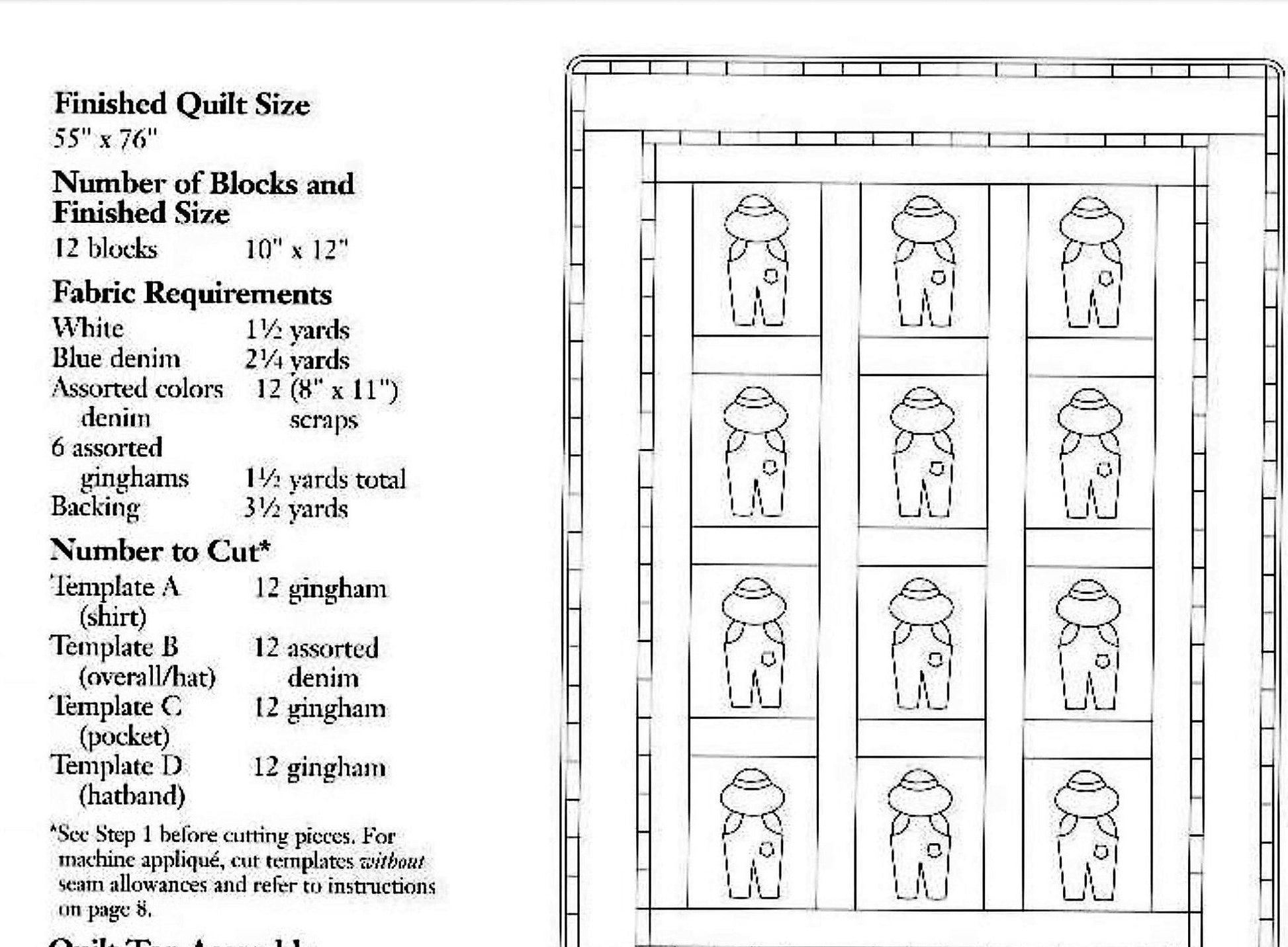 Offering a vintage 1980's instant PDF sewing pattern to make a charming Overall Sam quilt with hand or machine applique!