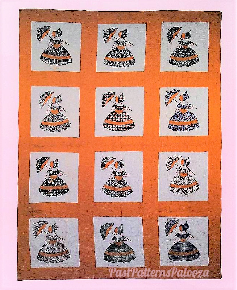 Vintage Sewing Pattern Parasol Petticoat Girls Bed Quilt PDF Instant Digital Download Colonial Crinoline Ladies Applique Blocks 66x87 1920