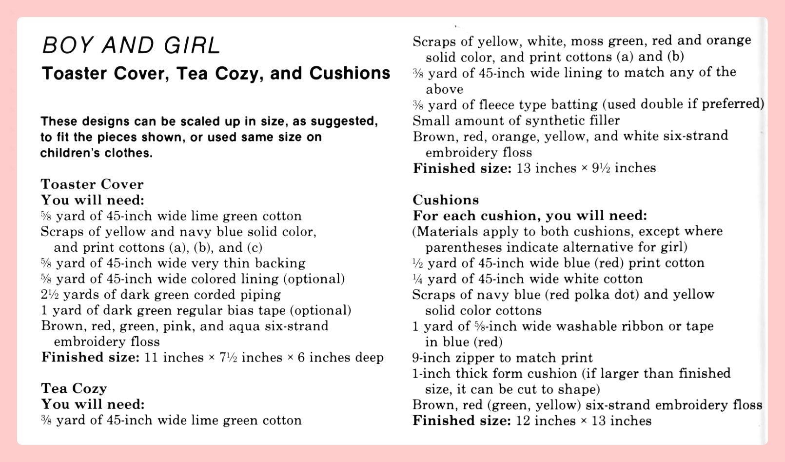 Remember that these are vintage patterns. Recommended material brands may be hard to find, but often superior substitutes are readily available.