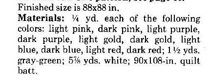 Finished quilt will measure approx 88" x 88". (223cm x 223cm) - size full/double bed or short drop covering for a queen bed.