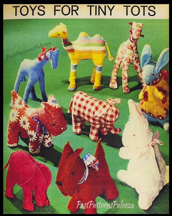 Offering a vintage digital PDF sewing pattern to make a fun, delightful soft animal toys for tots!