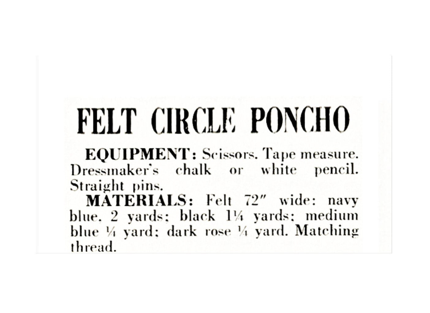 Includes quick, easy-sew written directions with quarter poncho chart for design layout and measurements. Simple shapes of triangles and rectangles (later rounded) are to be drawn to scale and applied to strips.
