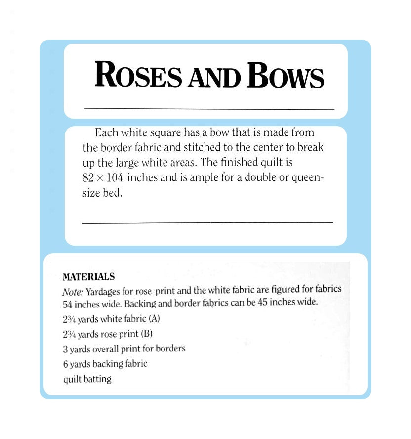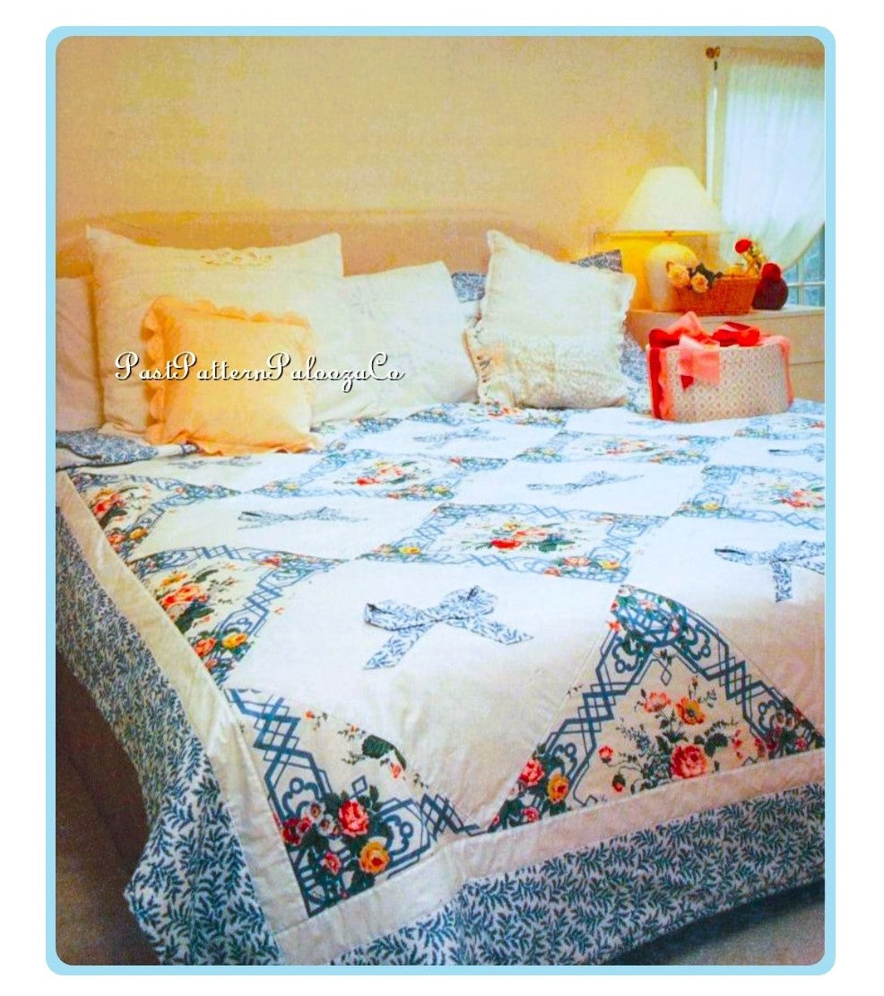 Vintage Sewing Pattern Romantic Roses & Bows Bed Quilt PDF Instant Digital Download Floral Diamond Squares Double Queen 82x104