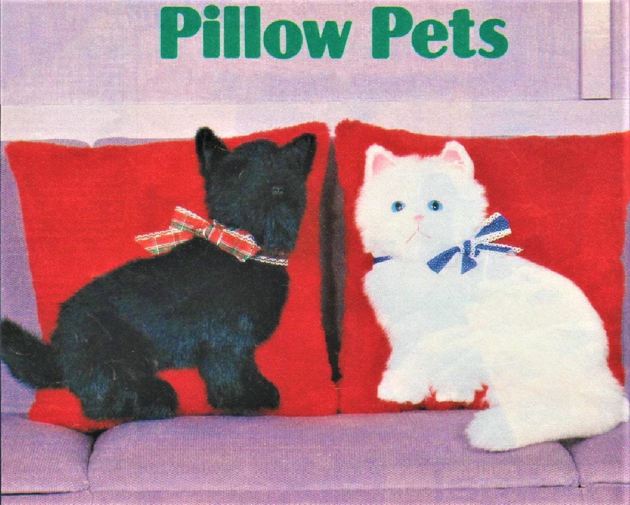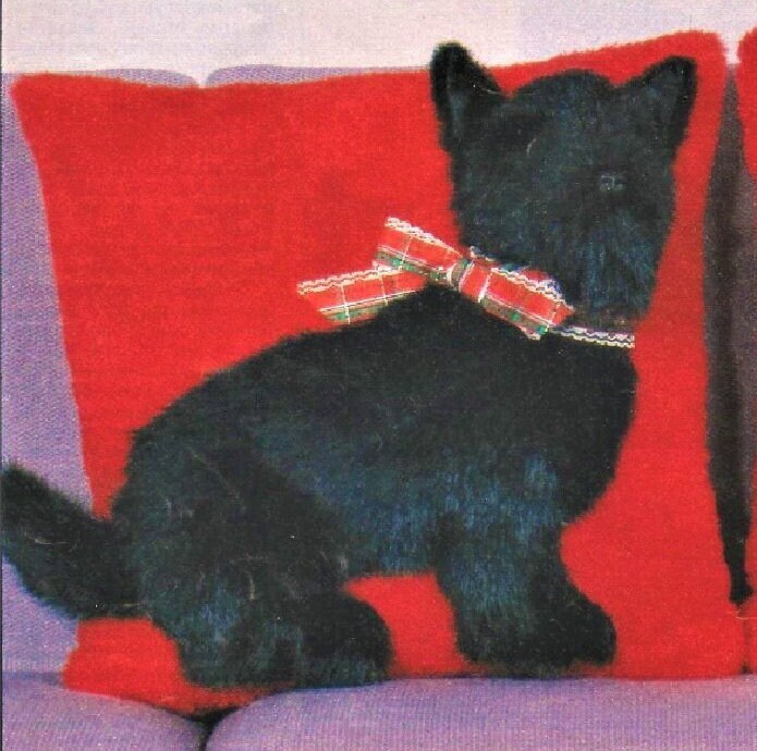 Vintage Sewing Pattern Scottie Dog Persian Cat Pillows PDF Instant Digital Download Realistic Faux Fur Pets Plush Cushions 18x18