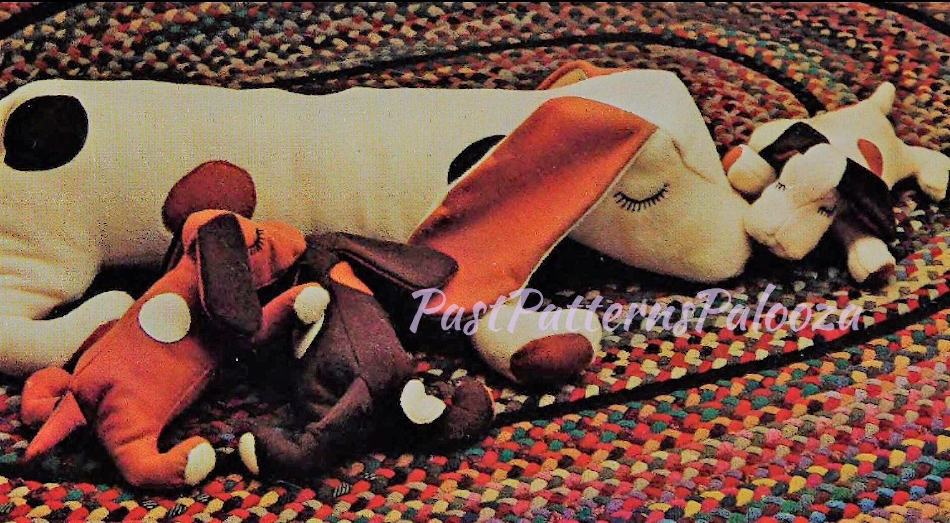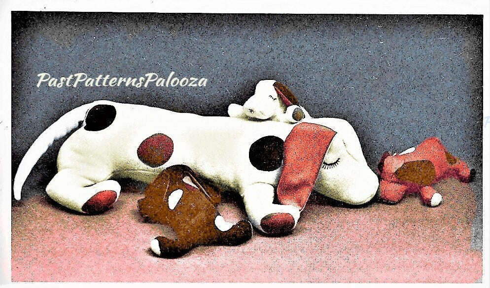 Vintage Sewing Pattern Sleepy Beagle Puppy Dog Family Litter Soft Toy Dolls PDF Instant Digital Download 33" Mama 12" Snap on Puppies
