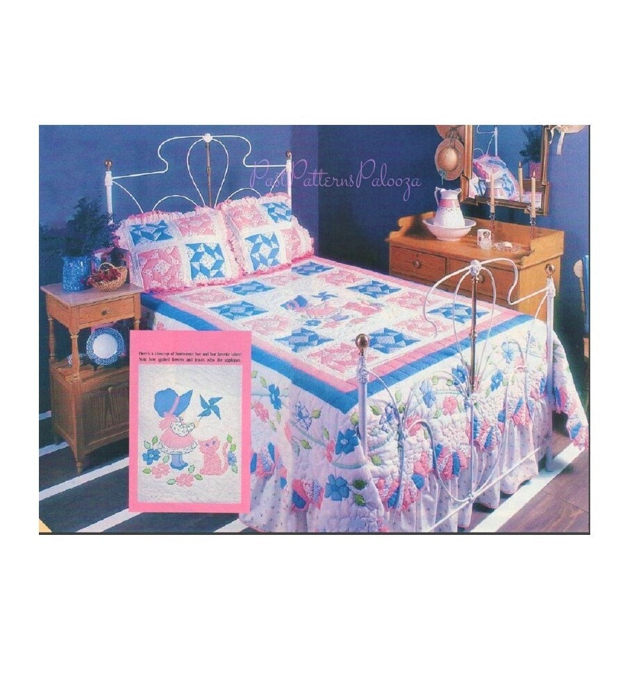 Vintage Sewing Pattern Sunbonnet Sue Quilt & Pillow Shams Set PDF Instant Digital Download Dresden Plate Patchwork Applique Bedspread 92x87