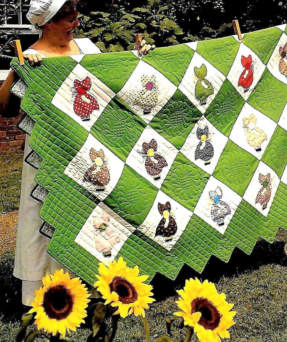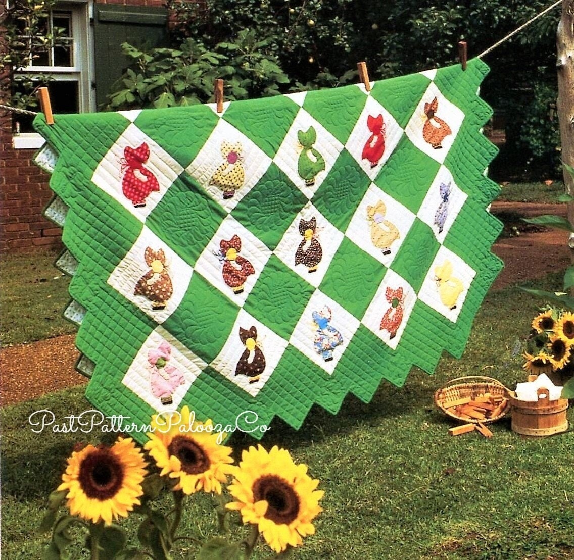 Vintage Sewing Pattern Sunbonnet Sue Windblown Girl Bed Quilt PDF Instant Digital Download Patchwork Applique Blocks Bedspread 78x91