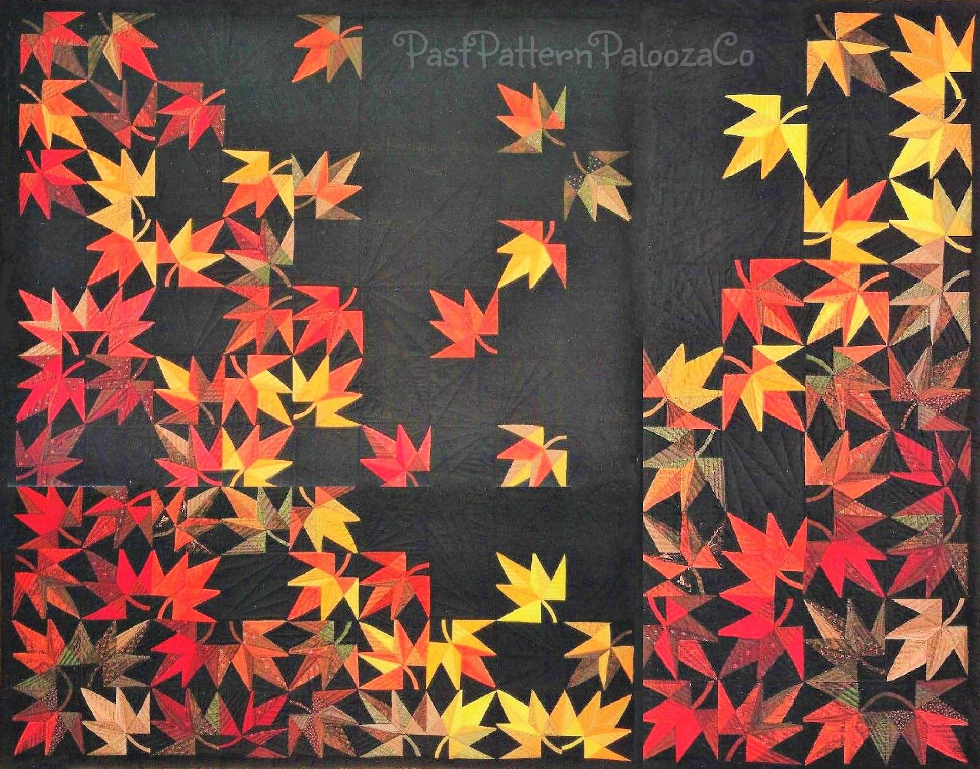 Vintage Sewing Pattern Windy Autumn Falling Leaves Patchwork Bed Quilt Wall Hanging PDF Instant Digital Download Autumn Blanket 71x86"