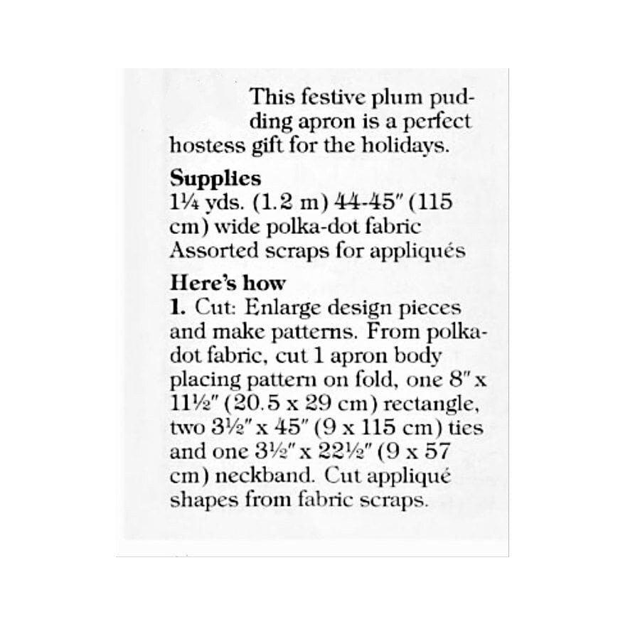 Offering a vintage digital PDF sewing pattern to make a fun and festive Plum Pudding Christmas apron and matching Pot Holder in polka dots and prints!