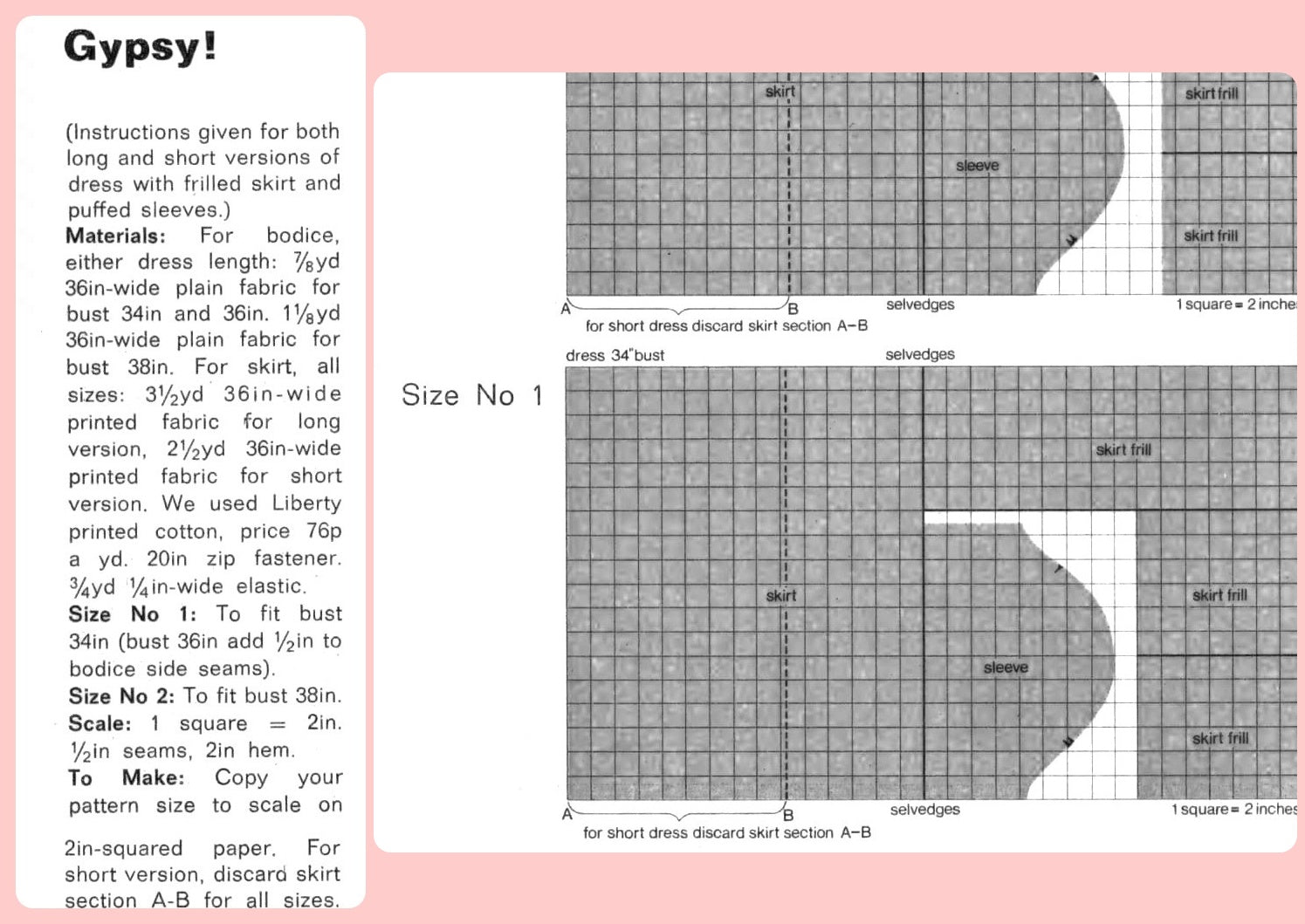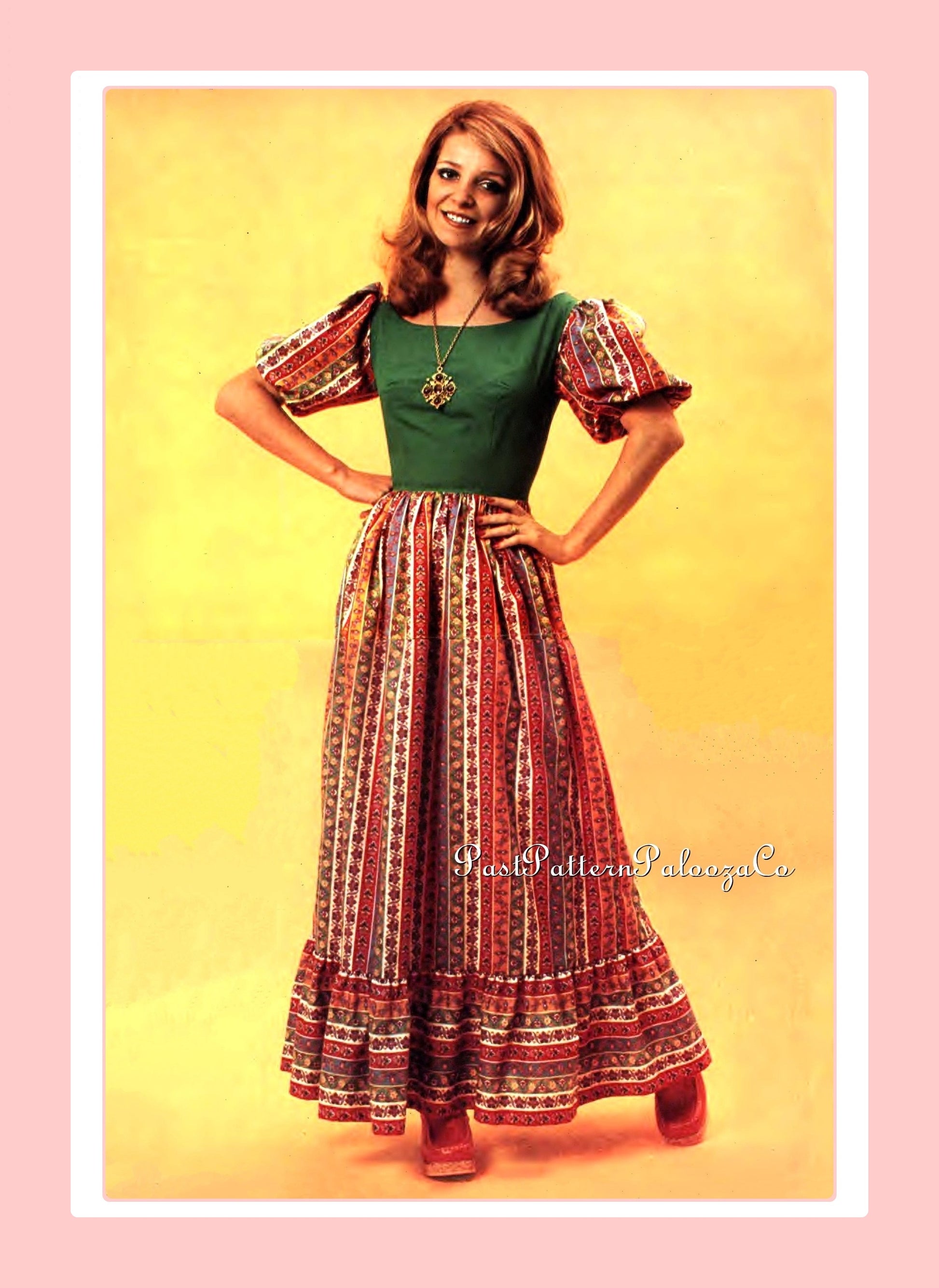 Offering a vintage digital PDF sewing pattern to make a pretty, retro "Gypsy" dress in both long/maxi and short/mini versions!