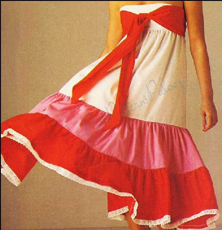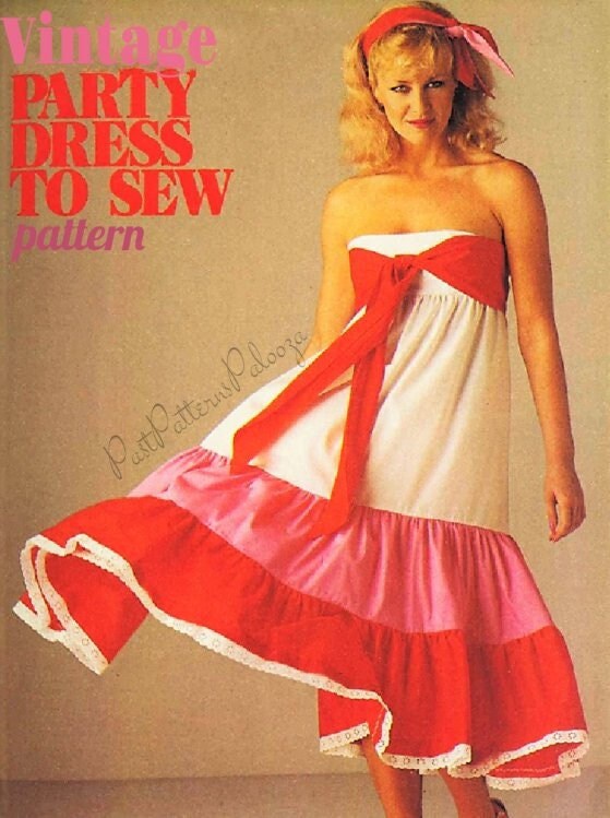Vintage Sewing Pattern Womens Pretty Sundress Party Dress Bandeau Bra Top Full Frilled Skirt PDF Instant Digital Download Retro '80s