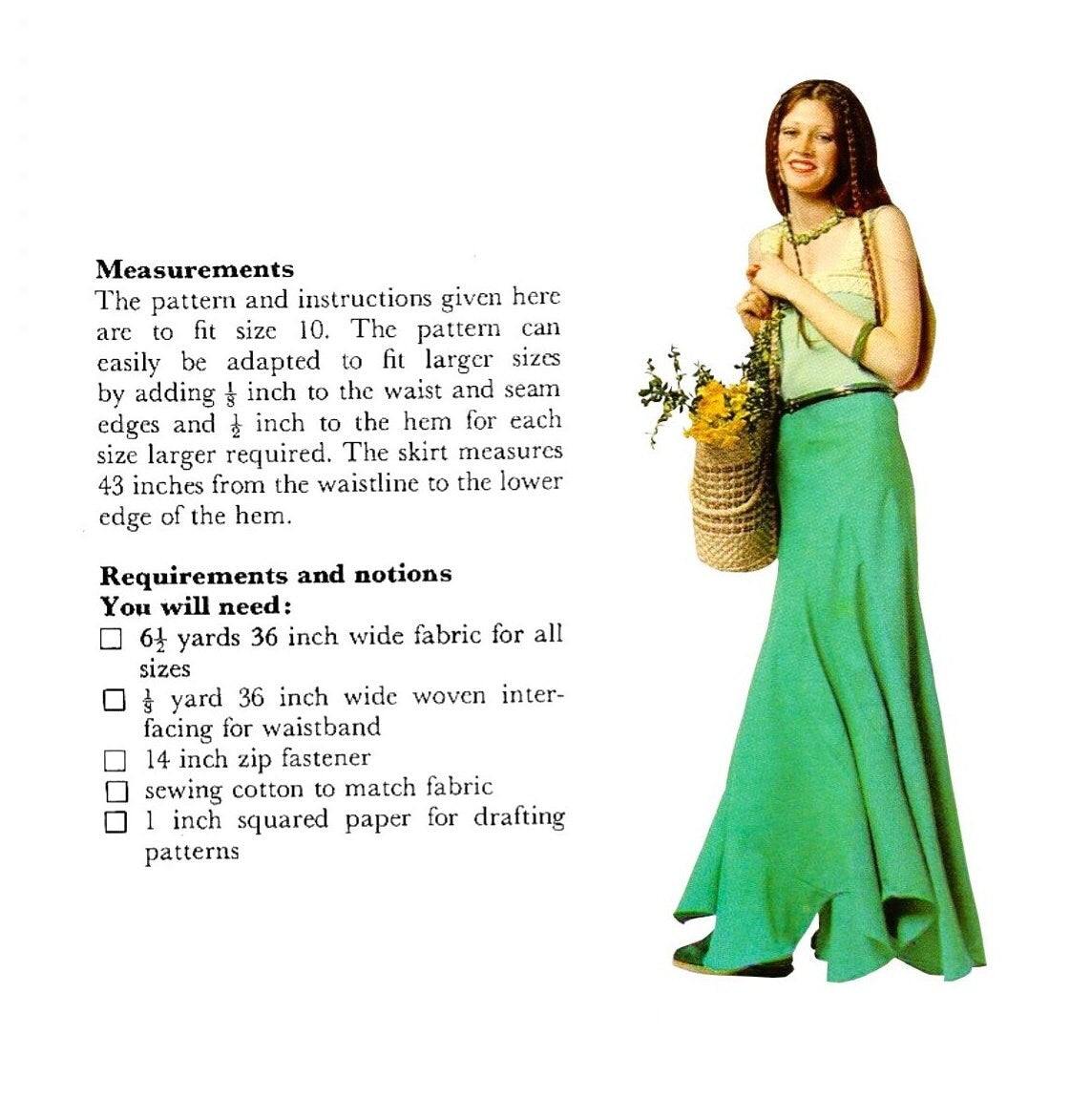 Vintage Sewing Pattern Womens Scalloped Gored Maxi Skirt PDF Instant Digital Download Retro Flared 70s Skirt Boho Hippie Gypsy Chic 1975