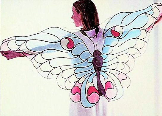Vintage Sewing Pattern Womens Stained Glass Butterfly Shawl Sheer Organdy Fabric PDF Instant Digital Download