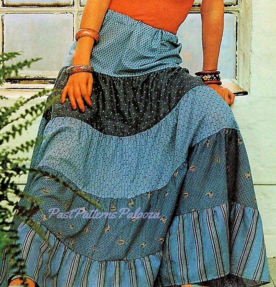 Vintage Sewing Pattern Womens Tiered Peasant Prairie Maxi Skirt Cotton Prints PDF Instant Digital Download Retro 70s Boho Hippie Chic