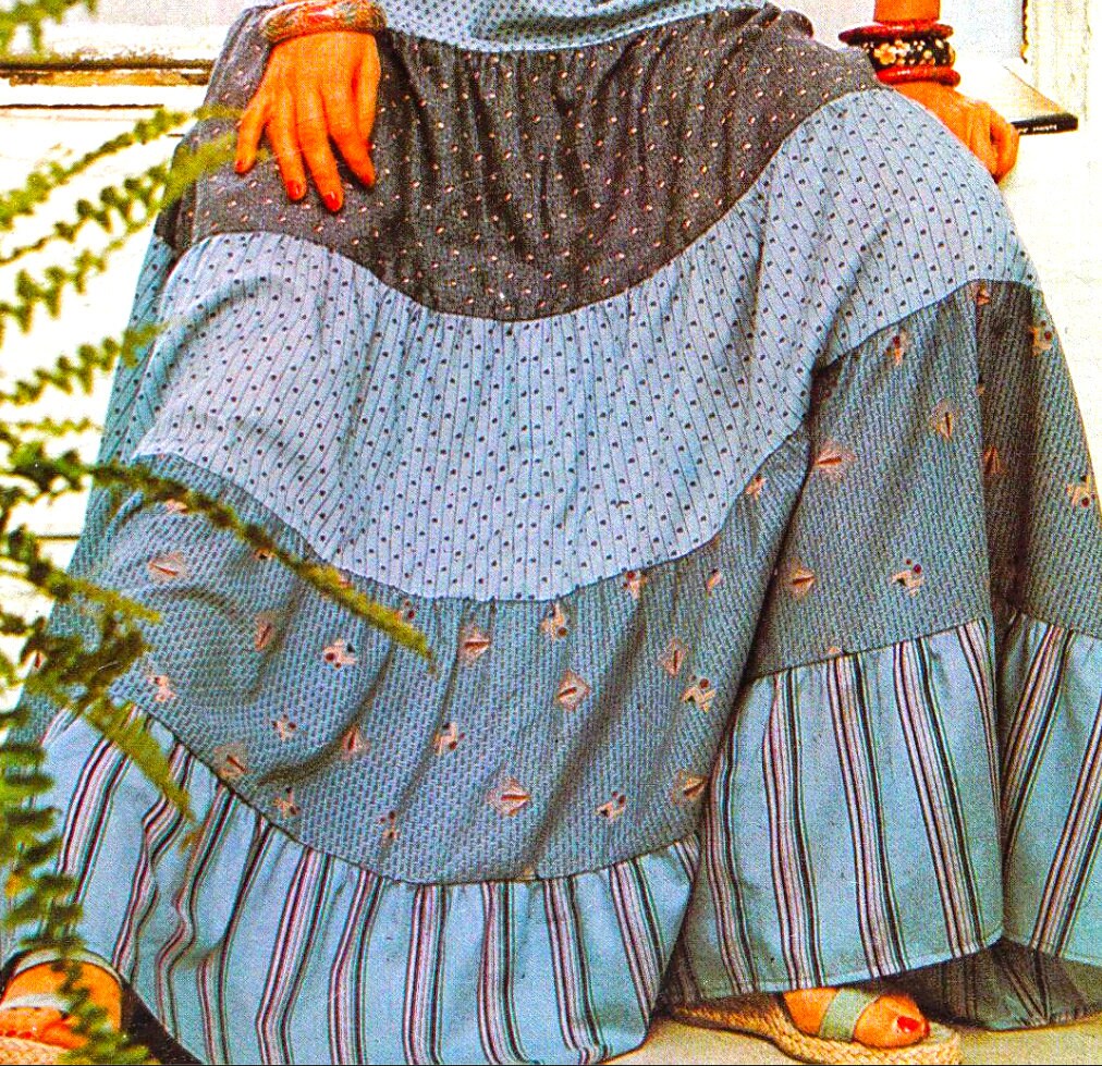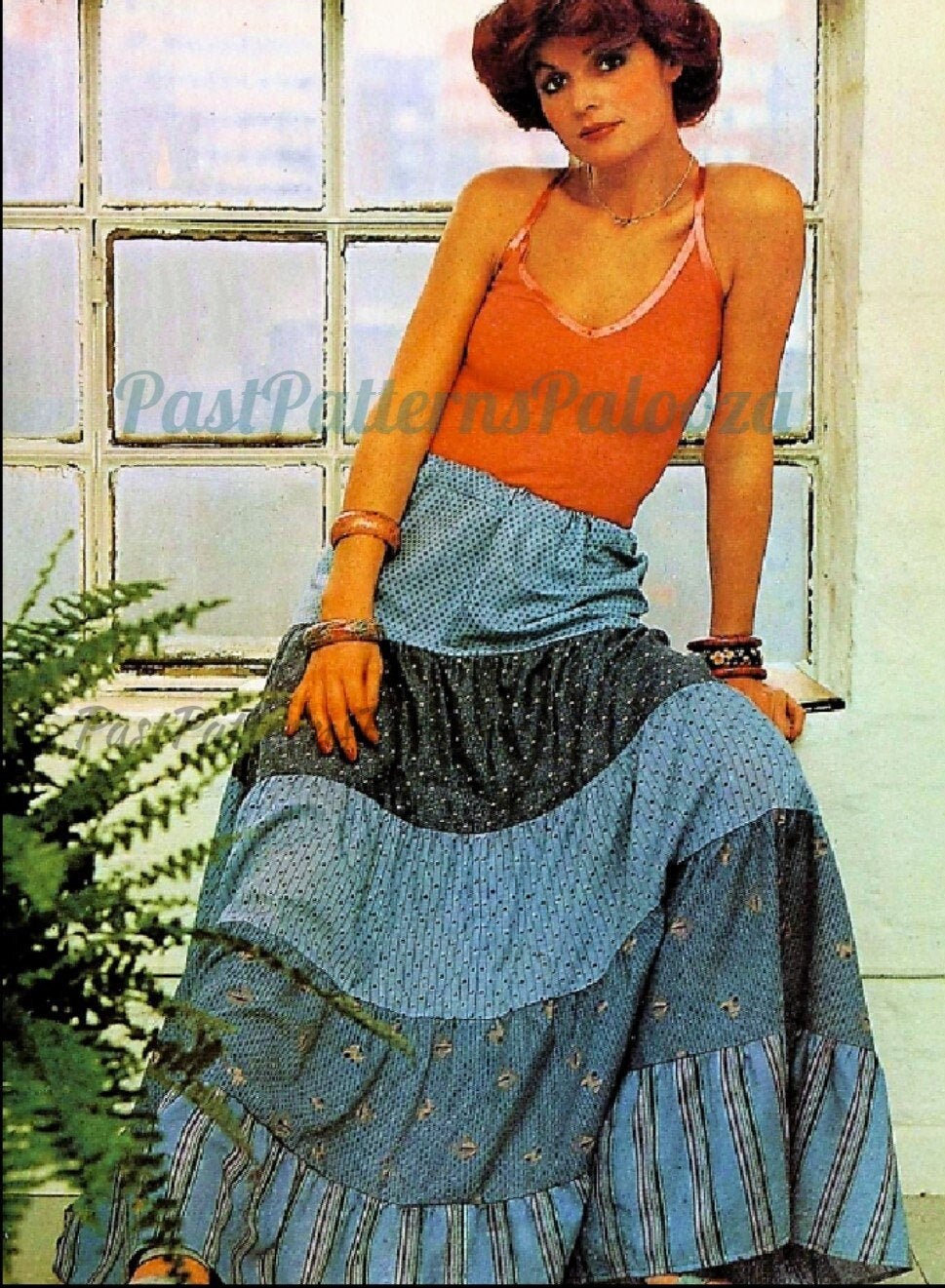 Offering a vintage 1970's digital PDF sewing pattern to make a pretty tiered maxi skirt to bring out your inner Gypsy!