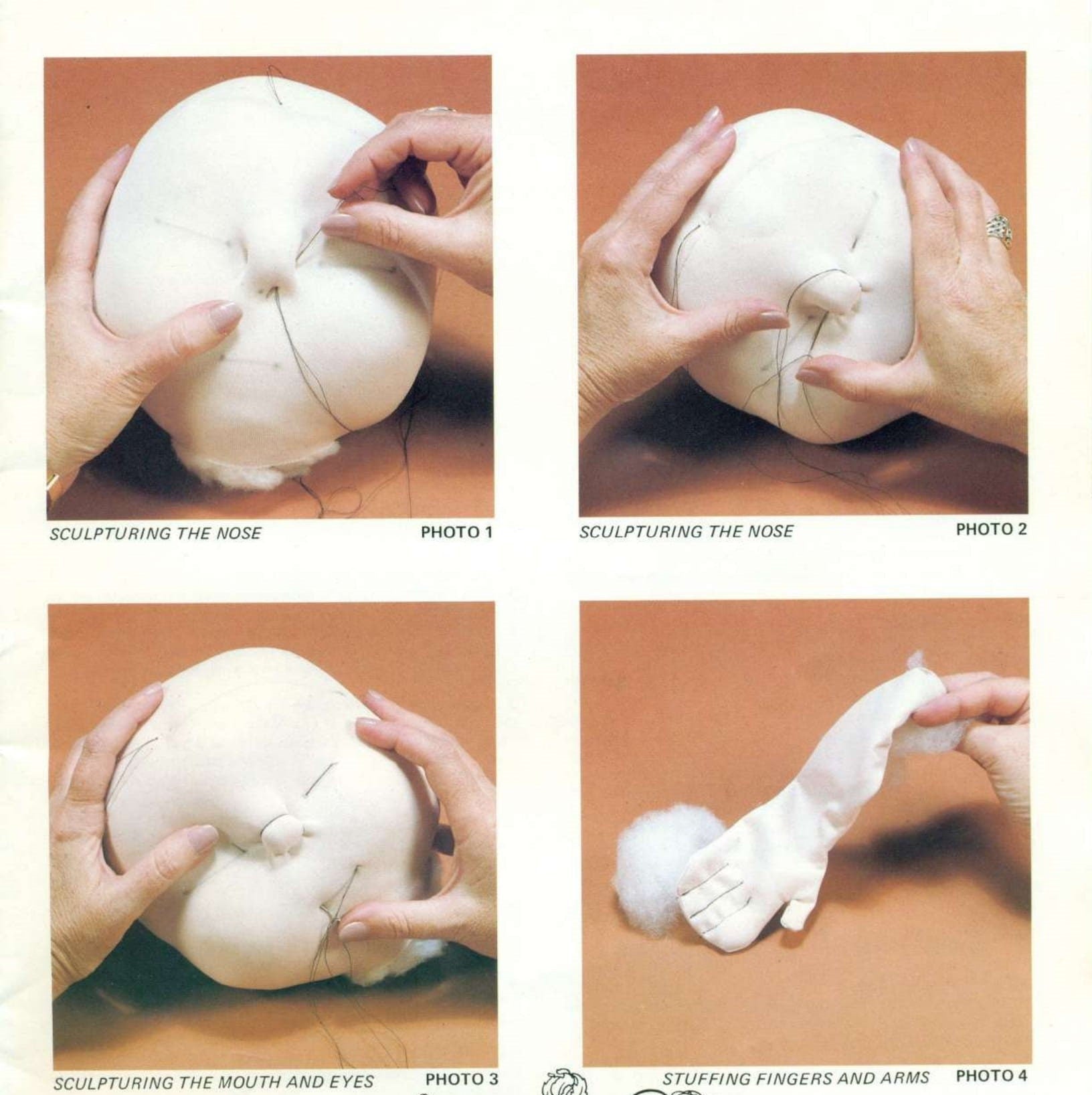 Materials required for doll body: flesh colored interlock polyknit fabric, fiberfill stuffing, needles & thread, marking pens, paint & paintbrushes, powdered blush.