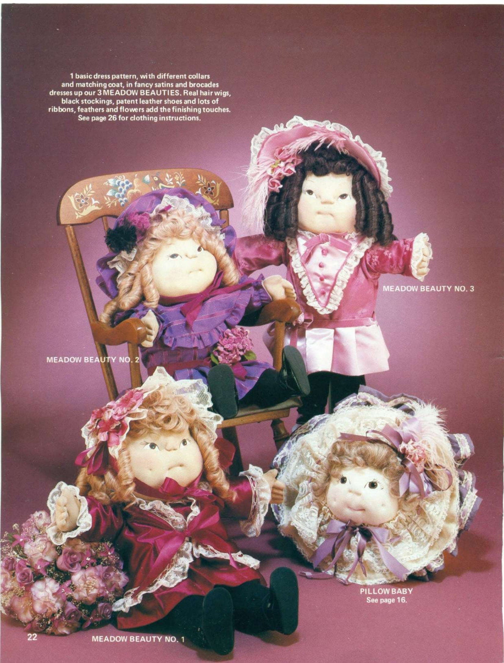 Vintage Sewing Patterns 18" 24" Soft Sculpture Toy Dolls Old Fashioned Outfits PDF Instant Digital Download Girl Boy and Pillow Face Dollys