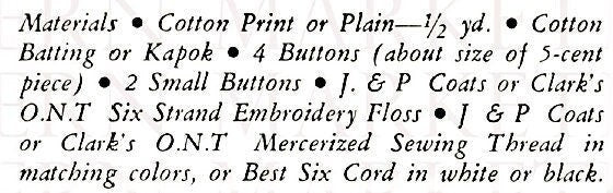Remember that these are vintage patterns. Recommended material brands may be hard to find, but often superior substitutes are readily available.