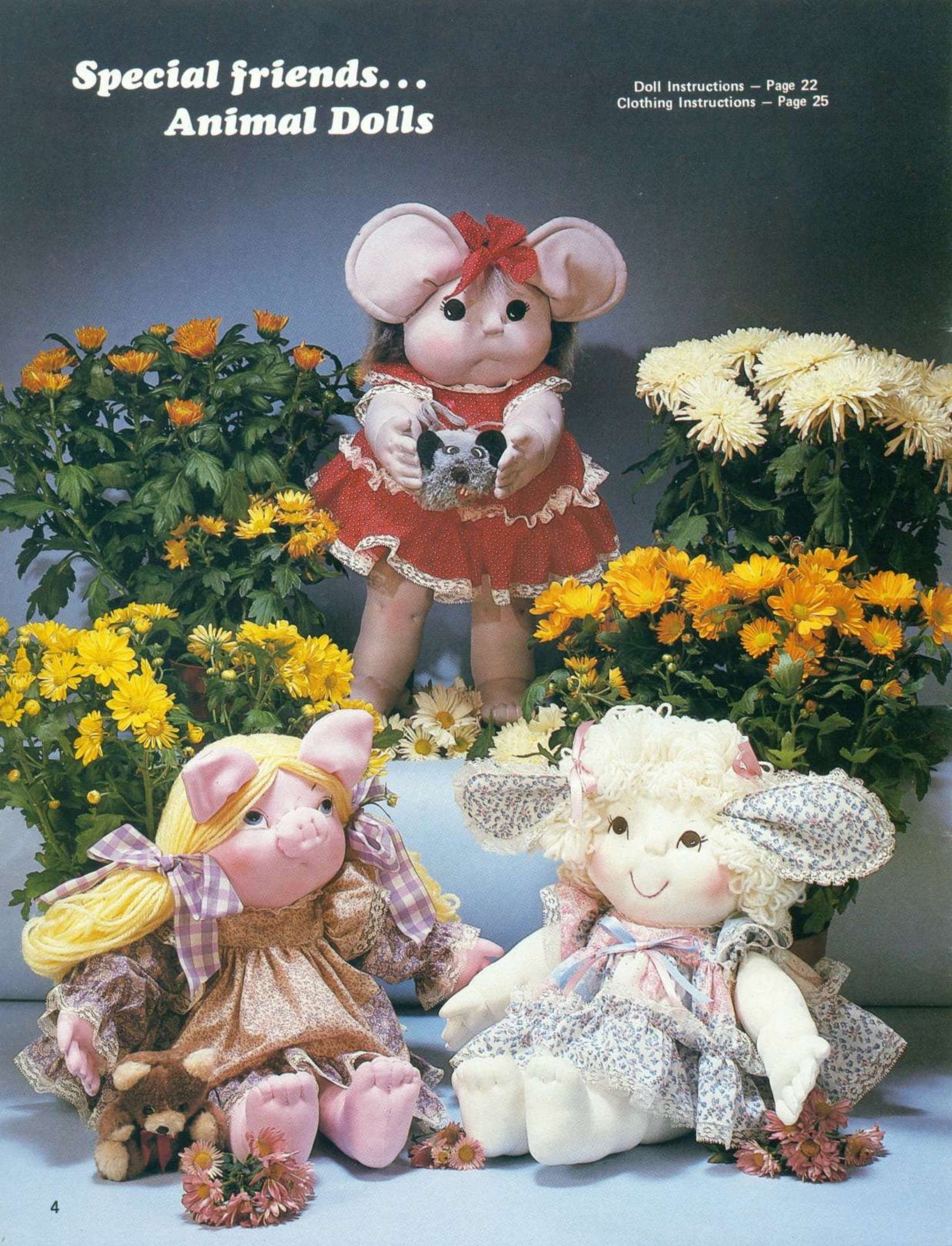 Vintage Sewing Patterns Soft Sculpture Toy Dolls Clowns Animals with Outfits PDF Instant Digital Download Cute Sculptured Dolls