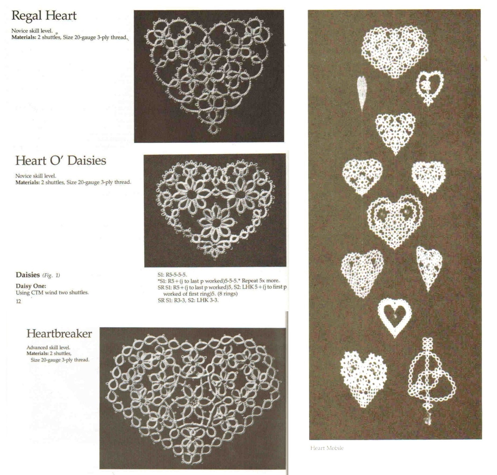 Offering a vintage digital PDF tatting pattern of patterns for 12 tatted hearts - for more experienced tatters, using the split ring technique - very pretty!