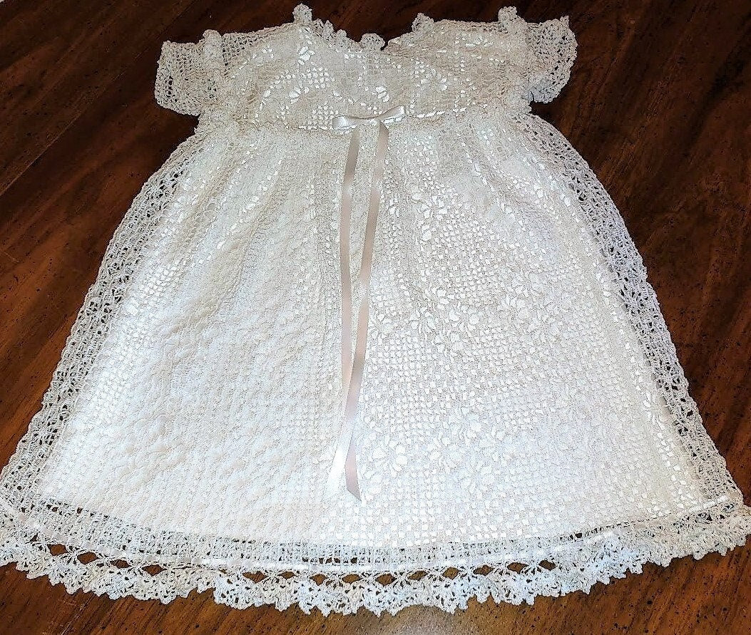 Offering a vintage PDF crochet pattern to make a beautiful heirloom-quality long A-line Christening gown!