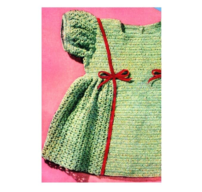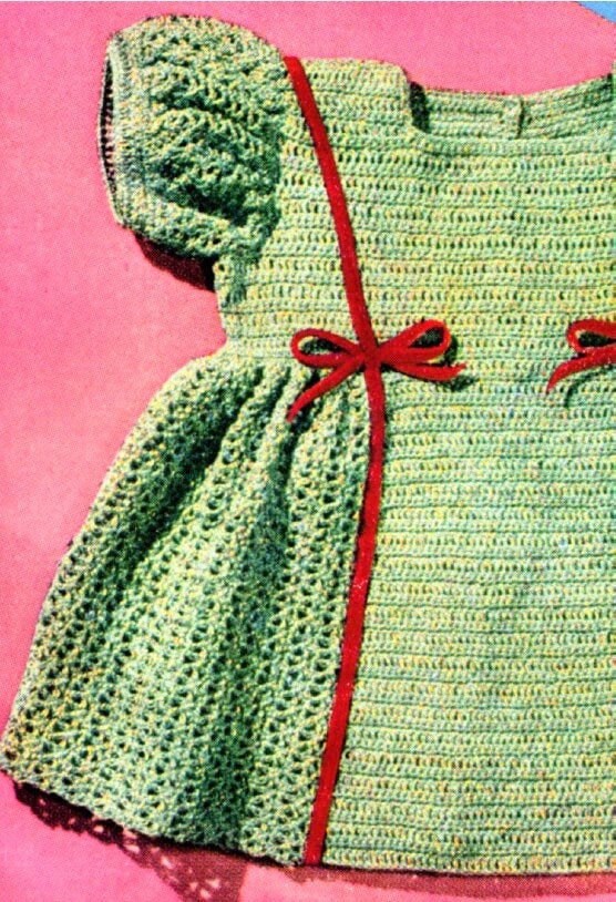 Offering a vintage digital PDF crochet pattern to make a pretty party dress for a baby to a toddler girl.