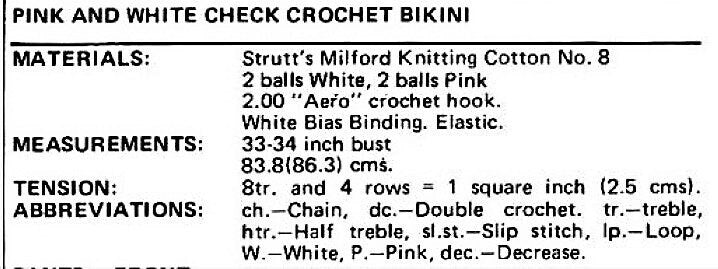 Offering a vintage PDF crochet pattern to make a pretty cotton beach ensemble including checkered bikini and sleeveless jacket beach cover in cotton thread!