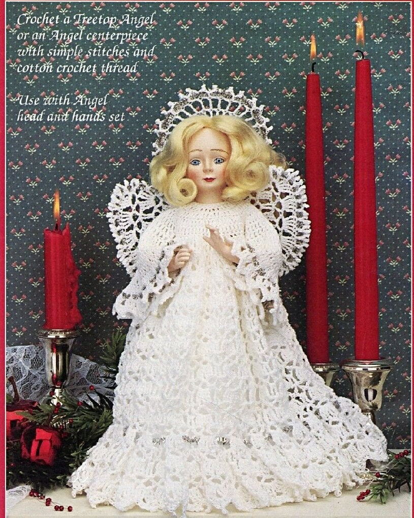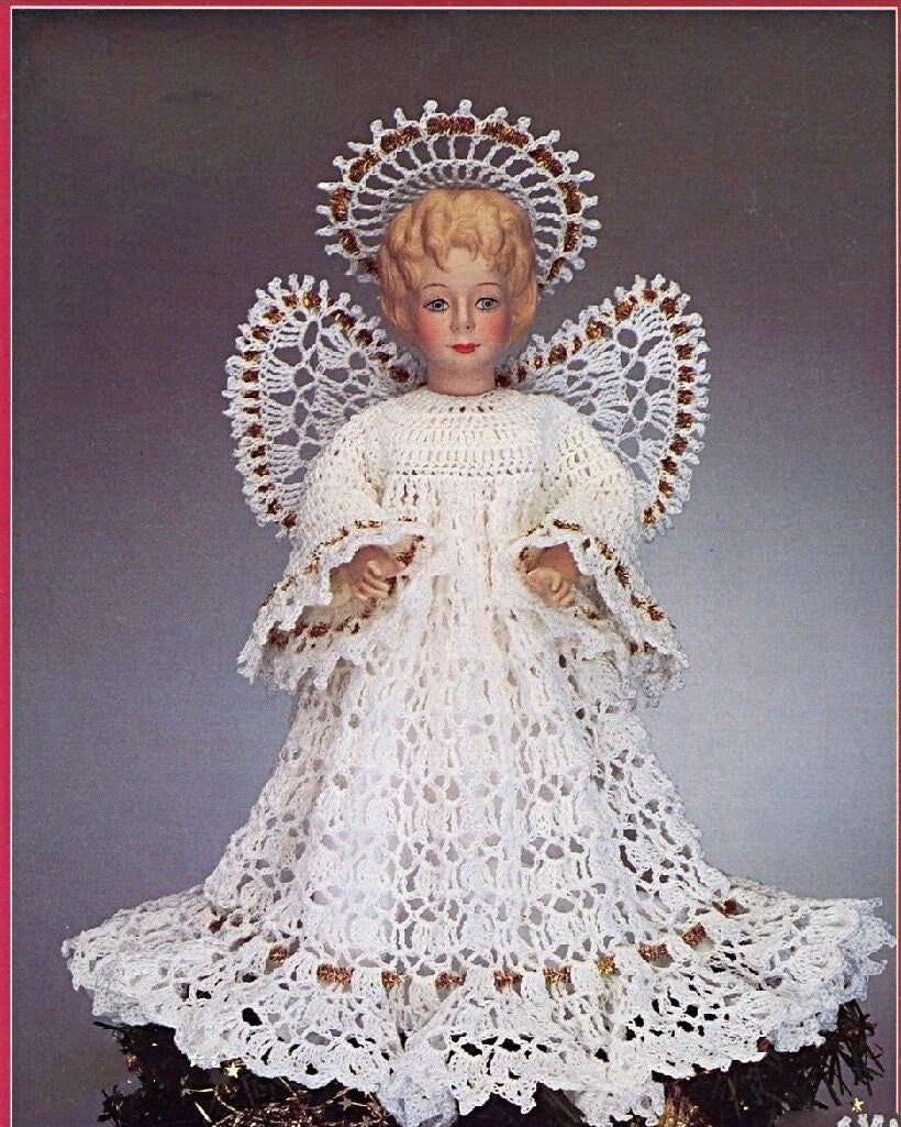 Vintage Thread Crochet Pattern Christmas Angel Doll Tree Topper or Centerpiece PDF Instant Digital Download Lacy Dress