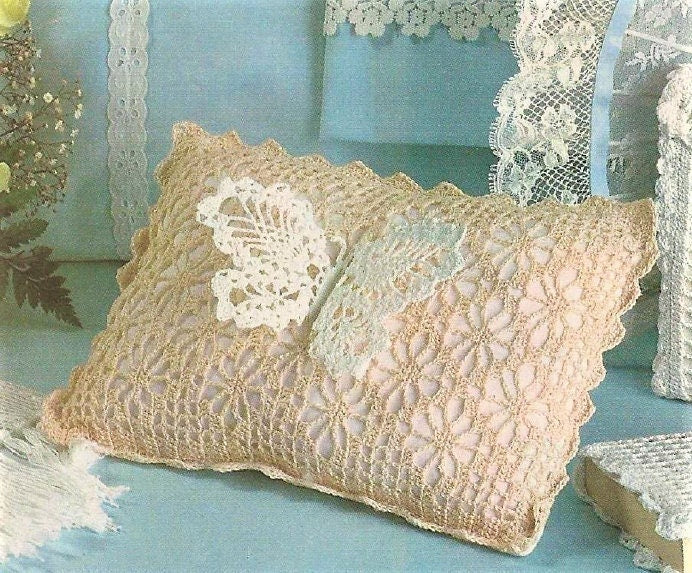 Requires crochet cotton thread, 8x10 pillow form and other materials listed in 2nd photo.