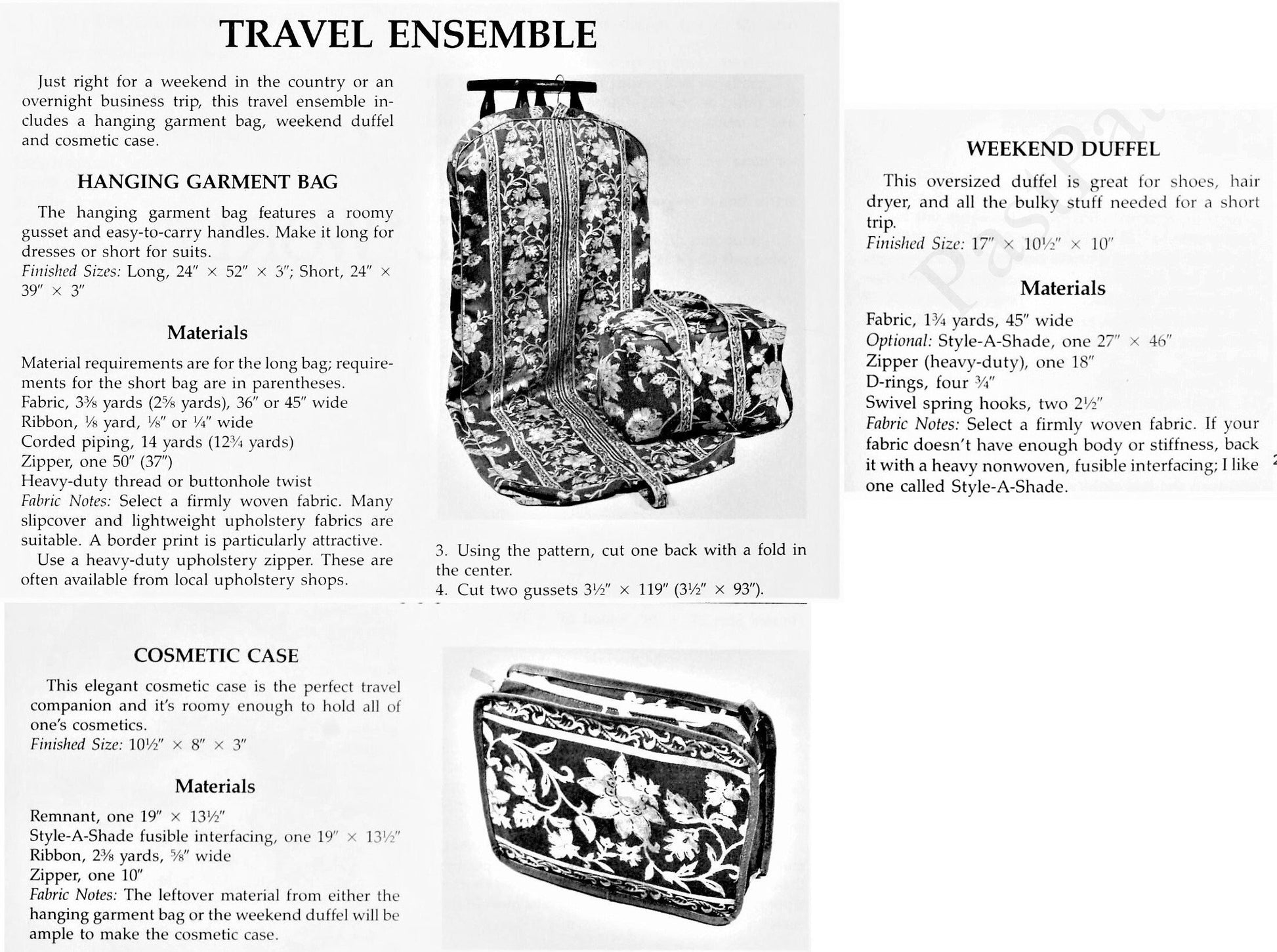 Vintage Travel Ensemble Sewing Pattern Hanging Garment Bag Tote Duffle Bag Cosmetic Case PDF Instant Digital Download Fabric Travel Trio